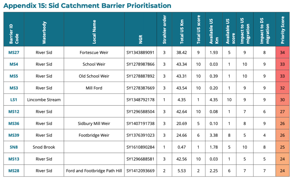 From the habitat survey, the Westcountry River’s Trust have created a priority order for the barriers to be worked on. We’ve pulled out the first and most urgent priorities. There are 9 further pages to cover the full 102 identified barriers. You can view the full list from page 158 of the Barrier Appendix.
